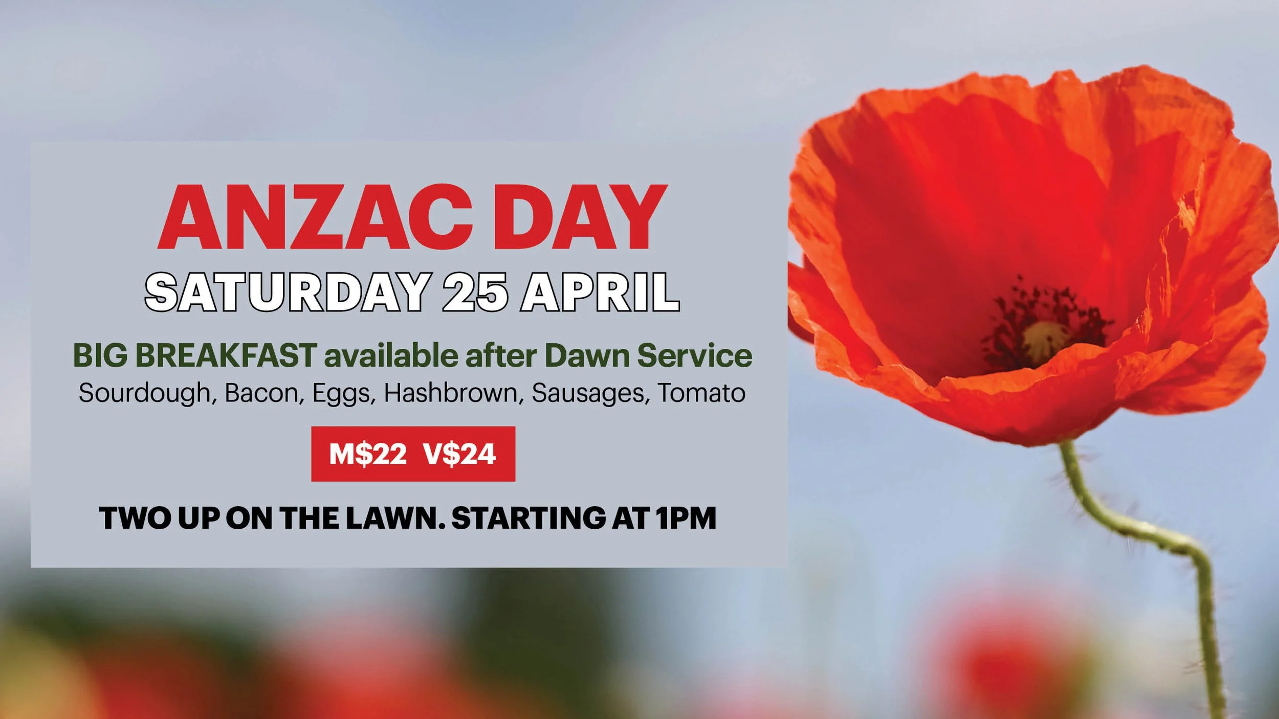 Start your morning with our Big Breakfast for just $22, available after the Dawn Service, a hearty way to begin a meaningful day.